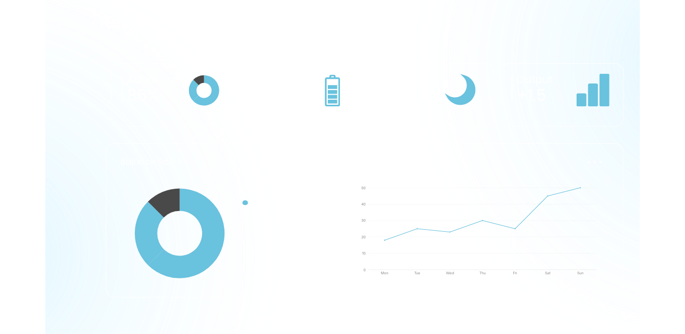 Fortschritt bleibt sichtbar. Balance-Score, Adhärenz und Marker wie Energie, Schlaf, Output. Wir justieren den Kurs, du bleibst in Bewegung.